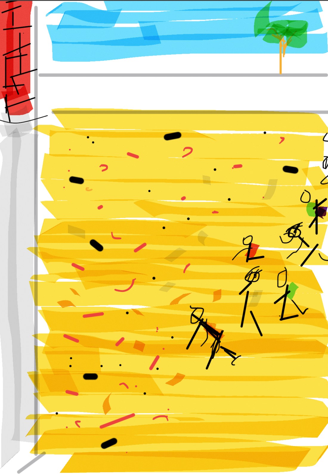 El patio enorme era una llano de tierra, que se llena de charcos. ¡Imagina el rato del recreo! Menos mal que alrededor había unos soportales enormes. En poco tiempo lo asfaltaron, pero seguía habiendo charcos. Solo que con esta mejora, si te caías, renovabas la piel de una sola vez.